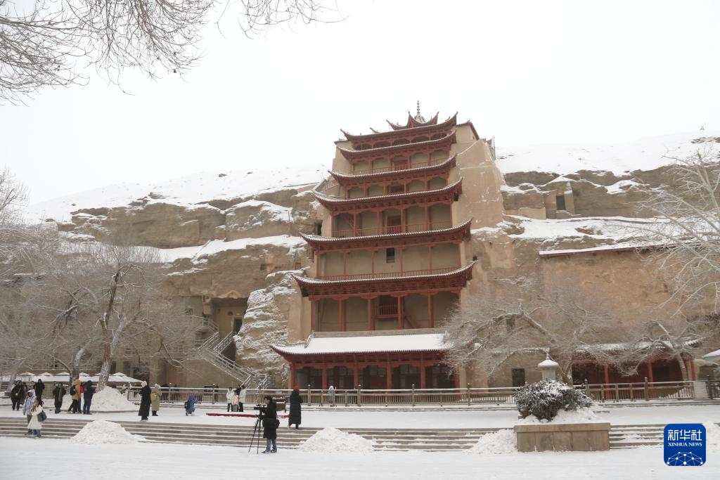 2月20日,游客在世界文化遗产敦煌莫高窟参观。新华社发(张晓亮摄)