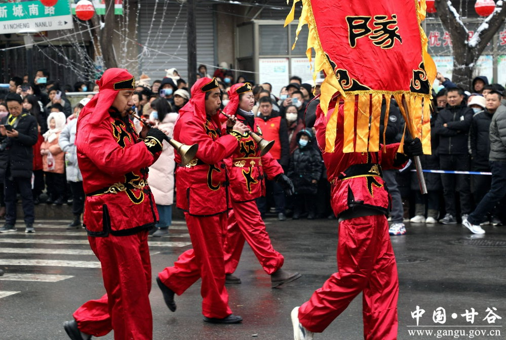 “看社火,扭秧歌,热热闹闹庆新春,红红火火过大年,大美甘谷的年味又回来了。”“虽然下着雪,但看社火的心情依旧是心潮澎湃的。”市民们看着精彩的社火表演,你一句我一句表达着内心的喜悦。