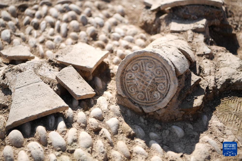 这是甘肃省陇南市礼县四角坪遗址出土的云纹瓦当(2022年6月10日摄)。新华社记者 陈斌 摄