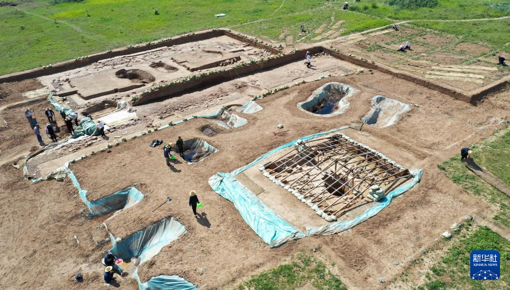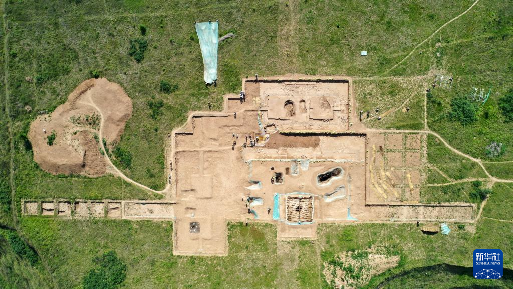 这是2022年6月10日拍摄的甘肃省陇南市礼县四角坪遗址考古发掘现场(无人机照片)。新华社记者 郎兵兵 摄
