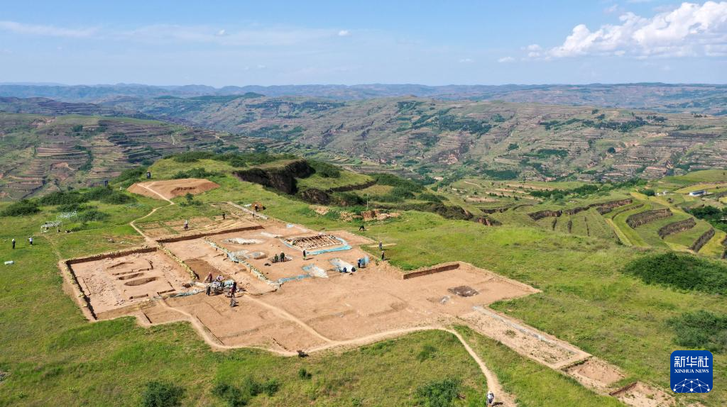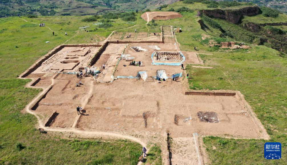 这是2022年6月10日拍摄的甘肃省陇南市礼县四角坪遗址考古发掘现场(无人机照片)。新华社记者 陈斌 摄