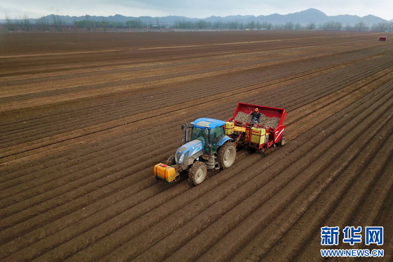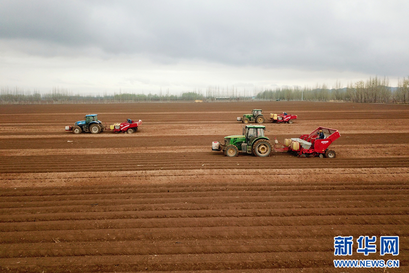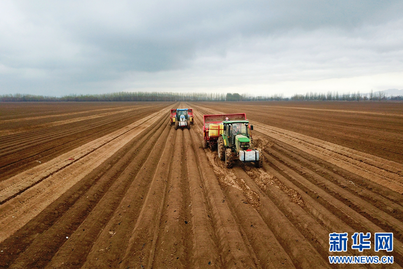 春耕正当时,田野涌春潮。时下,甘肃农垦条山农场三万亩马铃薯种植基地进入播种季。在整齐划一的大条田里,一辆辆大型马铃薯播种机来回穿梭忙碌,勾勒出了一幅线条生动的“工笔画”。(童张伟)