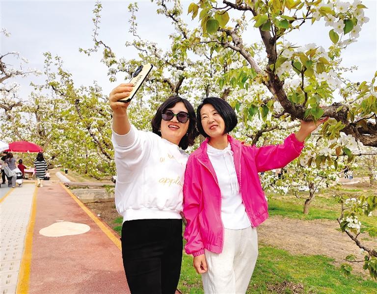 来自内蒙古阿拉善的李琴说:“我们去天水吃了麻辣烫,泡了麦积山的温泉,又到皋兰什川看梨花来了,这里有黄河,还有这么美的梨园,真不错!”