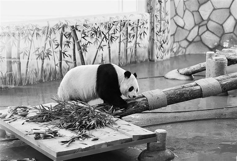 大熊猫“曼兰”正在活动。新甘肃·甘肃日报记者 冯乐凯
