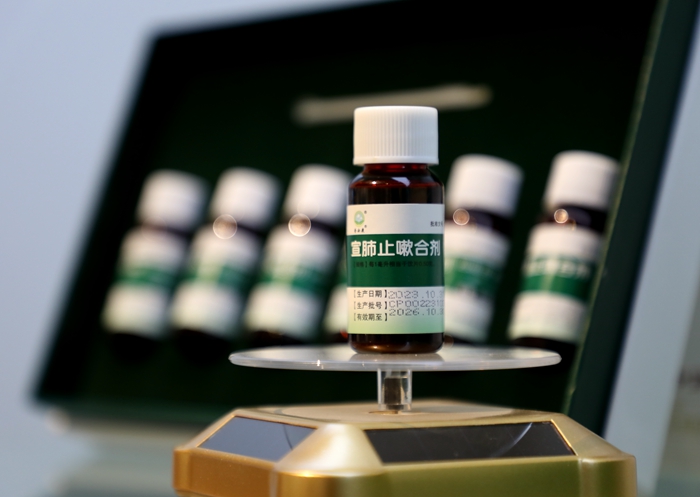 普安制药生产的宣肺止嗽合剂展品。