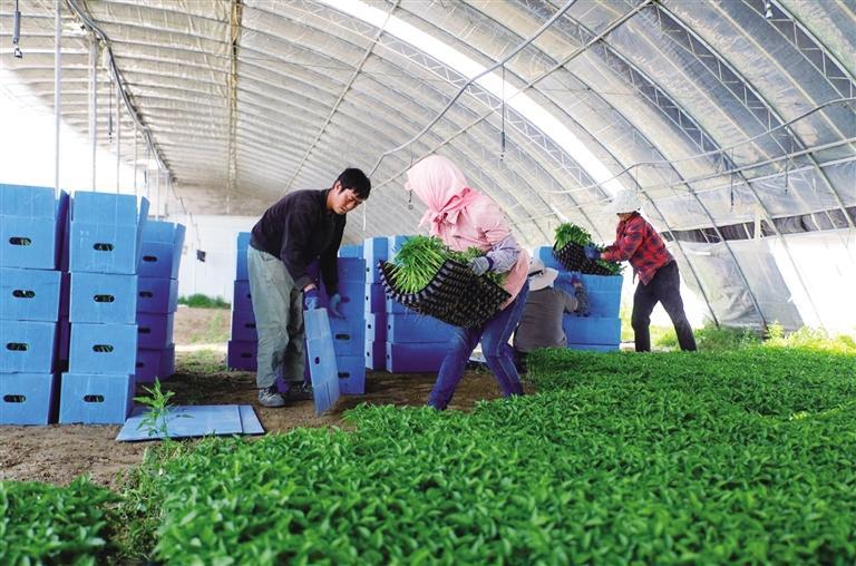 5月21日,在金塔县金塔镇中杰村辣椒种植基地,工人们正熟练地将一株株辣椒苗移栽到已经完成起垄、覆膜、打孔的土地里,现场一派繁忙景象。