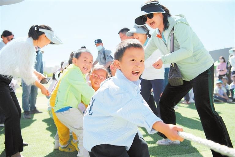 阿克塞县幼儿园孩子们在进行拔河比赛。新甘肃·甘肃日报通讯员 高宏善