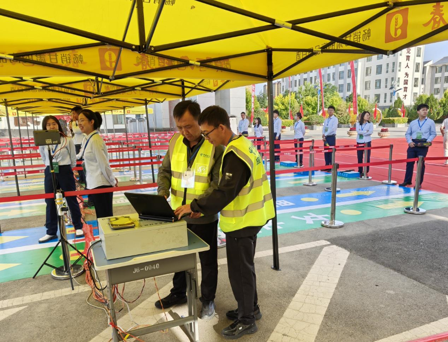 张掖分公司在张掖中学对考生入场身份认证设备和网络进行现场优化保障。(刘晋华 摄)