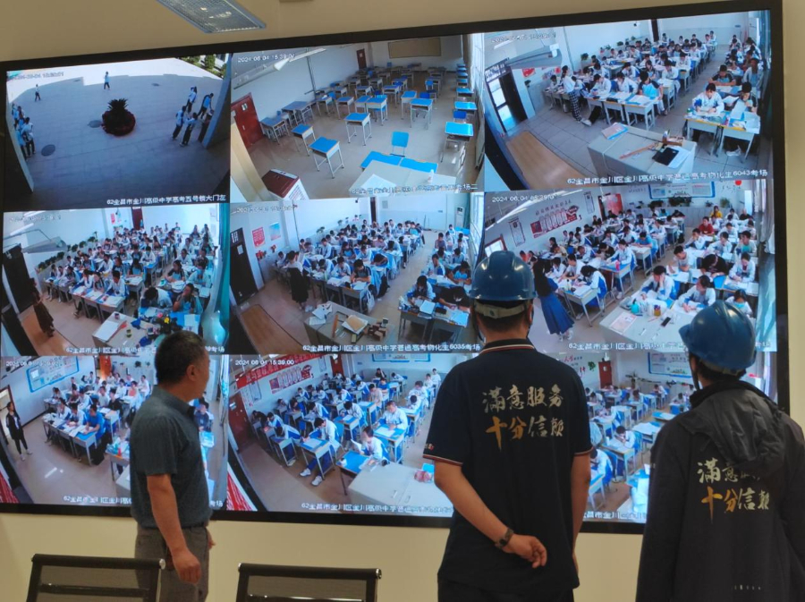 金昌电信在金川公司一高中对标准化考场视频监控进行优化保障。(李如檀 摄)