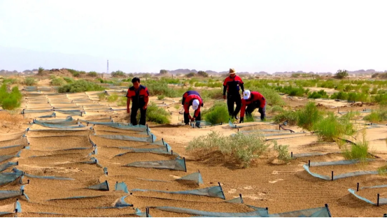 “我们从2021年起在沙障中间栽植梭梭280亩,布设尼龙网格纱障和草方格沙障3500亩,同时通过架设围栏、铁塔进行封禁保护,目前,总治理面积达到19.85万亩,实现了多措施综合治理的目标。”玉门市自然资源局林业草原事务中心主任何万红介绍道。