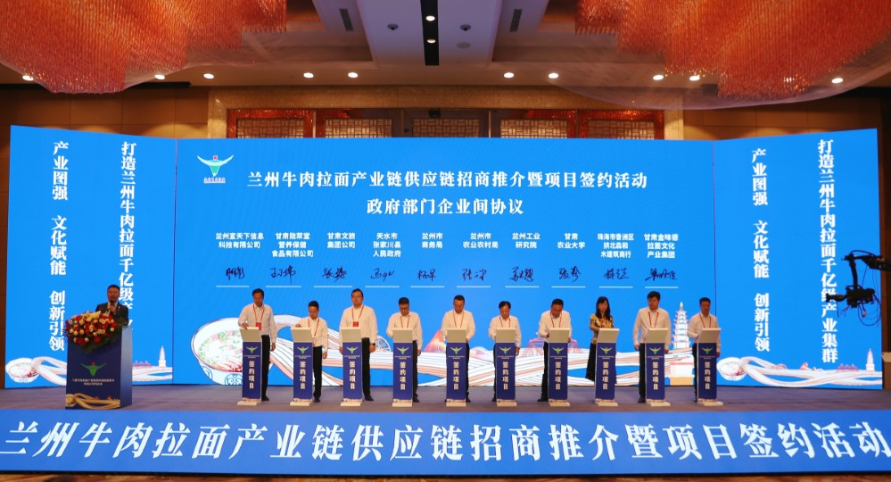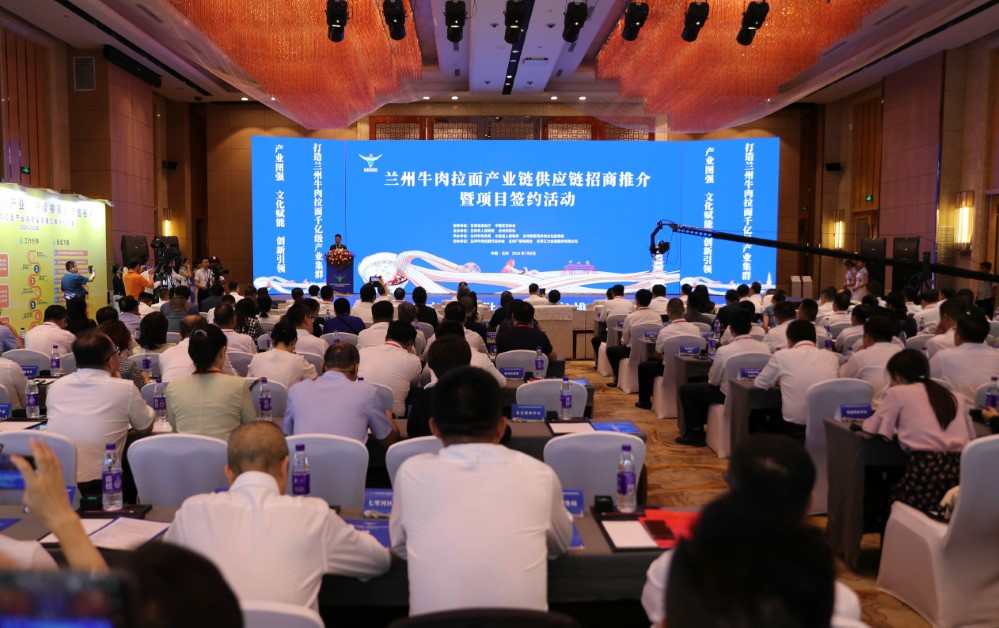 7月8日,借助兰洽会开幕万商云集的东风,兰州牛肉拉面产业链供应链招商推介暨项目签约活动在黄河之滨举行。