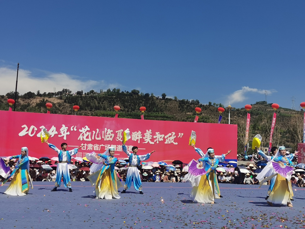 7月20日,甘肃省临夏回族自治州和政县古动物化石博览苑内,一场以“花儿临夏·醉美和政”为主题的甘肃省广场舞邀请赛盛大开启。来自兰州市、金昌市、临夏州等地的十六支广场舞队伍汇聚一堂,用饱满的热情和灿烂的笑容,为观众献上了一场视觉与文化交融的盛宴。