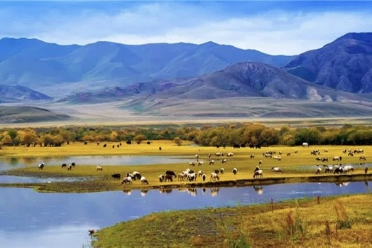 桑科草原位于甘南藏族自治州夏河县境内,属于草甸草原,平均海拔3000米以上。桑科草原风景如画,草地一望无垠、生长茂盛,河流如一条玉龙般盘旋在草原上,牛羊悠然的在这里享受来自大自然的馈赠。没有城市的喧嚣、市井的嘈杂,这里只有风吹草低见牛羊的美景,令人心驰神往。