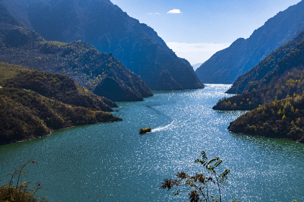 峡谷四周遍山苍翠,古树参天,清澈见底的腊子河水,波光粼粼。隘口高峻的悬崖绝壁巍然对峙,似一扇不可逾越的天门。唐代诗人李白在《蜀道难》一诗中用“一夫当关,万夫莫开”呈现了蜀道的奇丽惊险和不可凌越的磅礴气势,此意境也适用于天险腊子口。