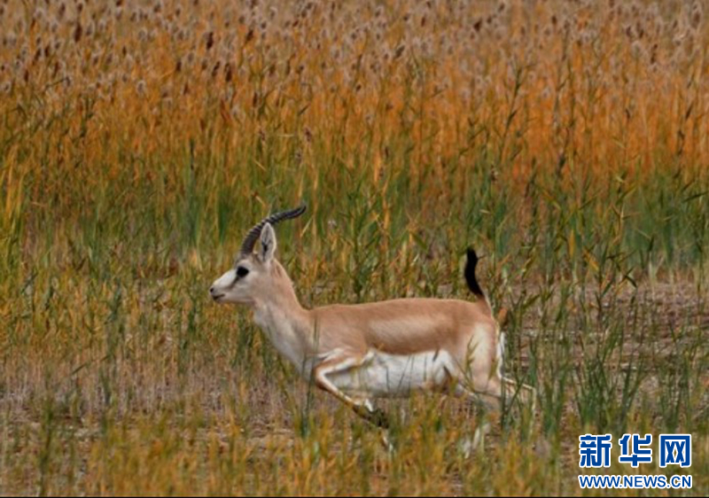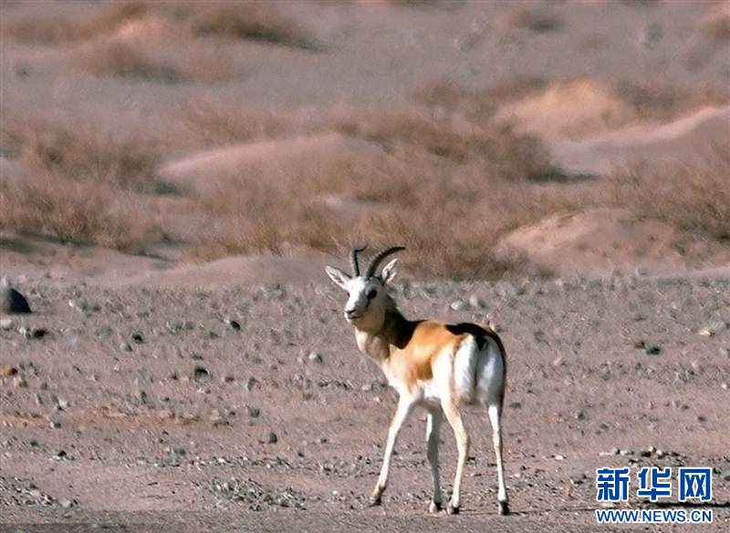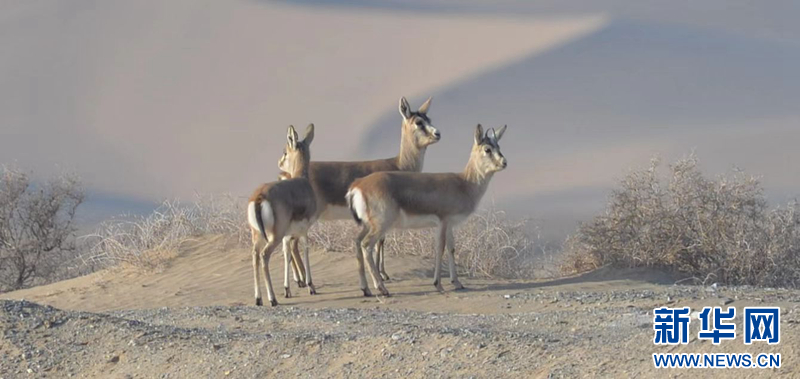近日,甘肃敦煌阳关国家级自然保护区工作人员在保护区内监测到30多只国家二级重点保护野生动物鹅喉羚。