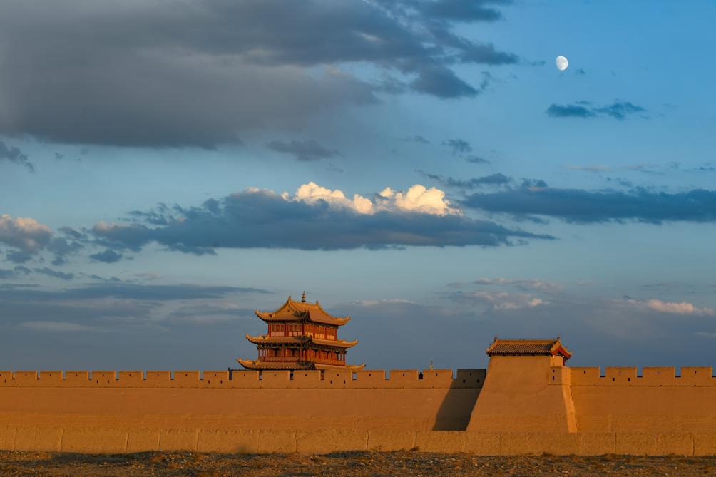 8月16日拍摄的夕阳下的嘉峪关关城。新华社记者 郎兵兵 摄