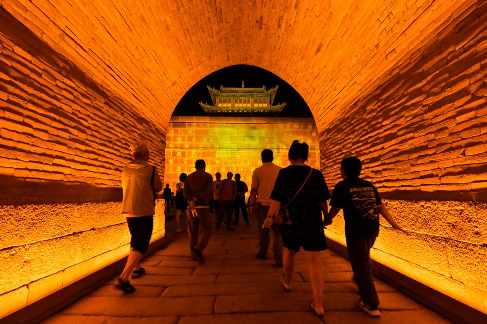 8月16日,游客在嘉峪关关城体验夜游。新华社记者 郎兵兵 摄