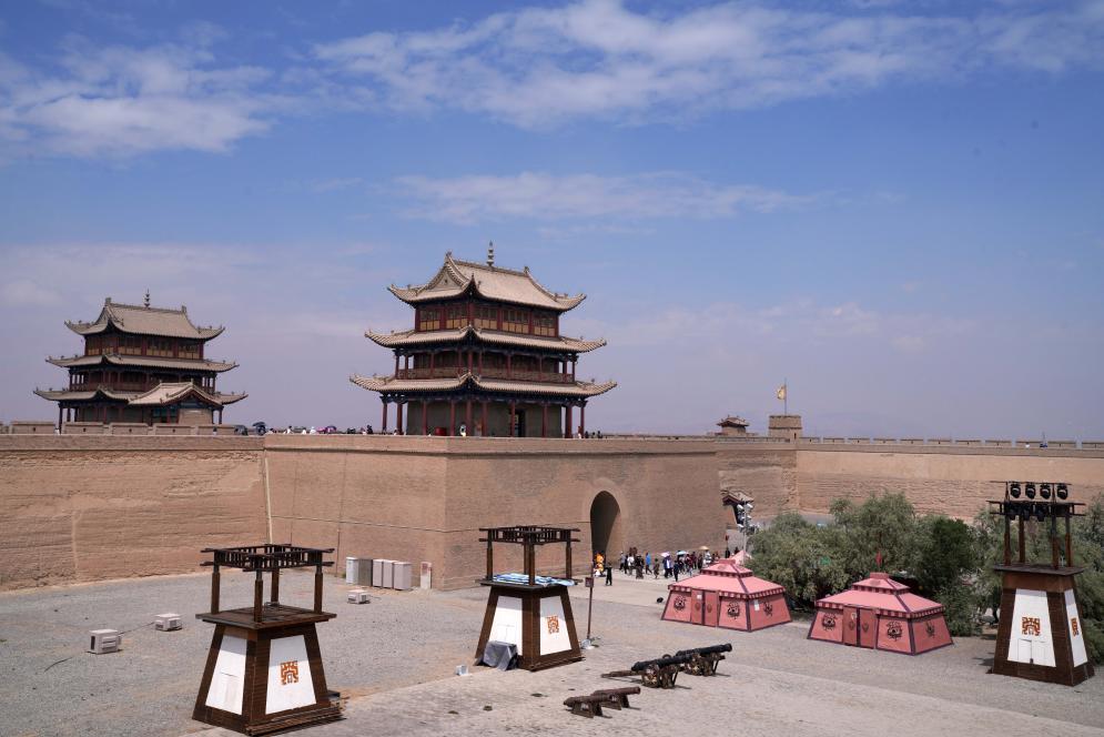7月14日拍摄的嘉峪关关城柔远门门楼和其后面的嘉峪关楼。新华社记者 马宁 摄