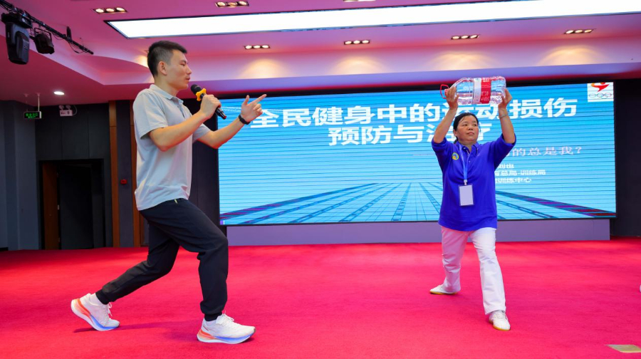 在当天活动的运动健康大讲堂上,国家体育总局训练局体能训练师刘也为健身群众烹制了一份科学健身“美味大餐”。他以“全民健身中的运动损伤预防与治疗”为主题,以生动的授课方式深入浅出地讲授科学健身知识和方法,纠正错误锻炼方式,普及科学的运动方式,让现场群众受益匪浅。
