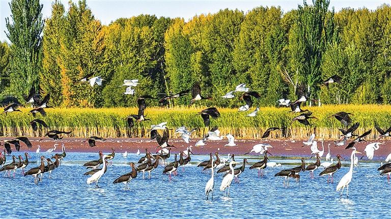 黑河缓缓流经张掖境内,在这里形成了总面积4.1万公顷的张掖黑河湿地国家级自然保护区。近年来,张掖市全面推进黑河流域水生态环境保护,建设绿色健康的林水生态体系,实现了河畅、水清、岸绿、堤稳的治理目标,保障了黑河流域经济社会和生态安全。