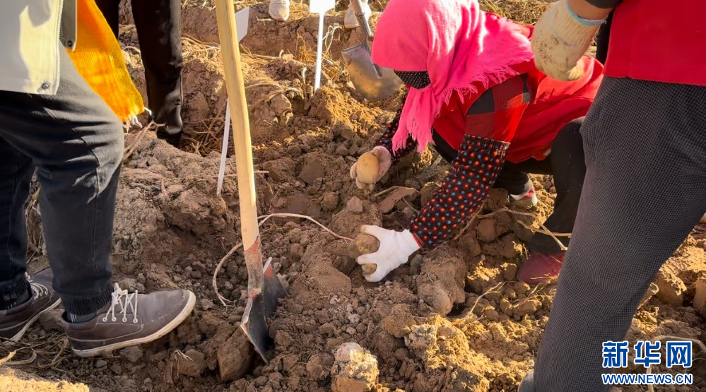 新华网兰州10月14日电 (苏燕平) 金秋时节,走进武威市凉州区发放镇下沙子村,随着大型采挖机械在地里穿梭,一垄垄金黄的马铃薯破土而出。农户们纷纷捡拾、装袋,一派繁忙。