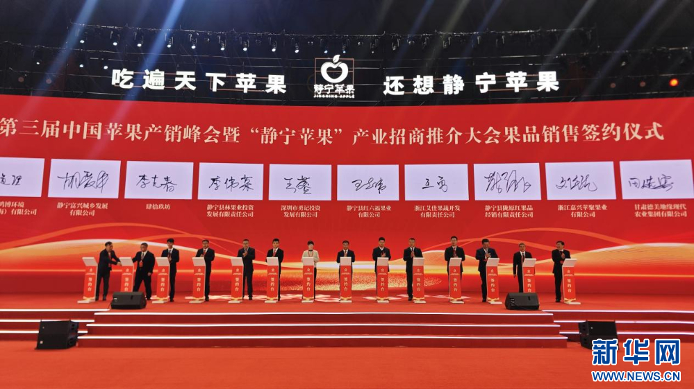 新华网兰州10月16日电(童张伟)16日上午,第三届中国苹果产销峰会暨“静宁苹果”产业高质量发展招商推介大会在甘肃省平凉市静宁县开幕。开幕式上举行了招商引资项目和果品销售协议签约仪式,平凉市与全国多家企业签约招商引资项目24个,签约额68亿元;签订果品销售协议180个,签约额44亿元。