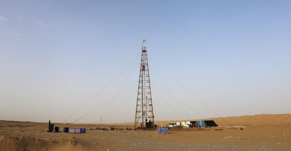 这是研究团队拍摄的塔克拉玛干沙漠腹地科学钻探现场。(受访者供图)