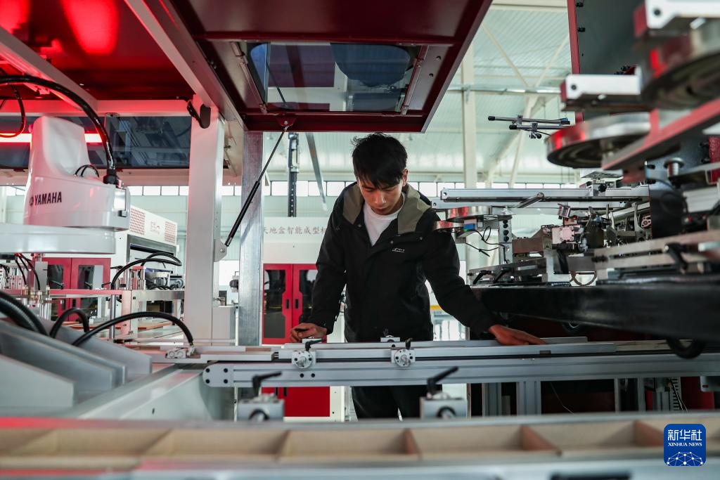 11月21日,在甘肃陇南经济开发区一家纸箱包装企业生产车间,工作人员在调试新设备。新华社记者 郎兵兵 摄