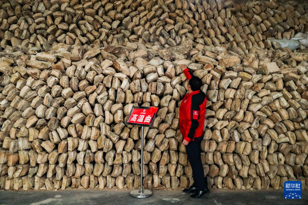 11月21日,在甘肃陇南经济开发区一家白酒企业厂区,甘肃省级非遗红川酒酿造技艺传承人张博在观察古法制作的酒曲干燥情况。新华社记者 郎兵兵 摄