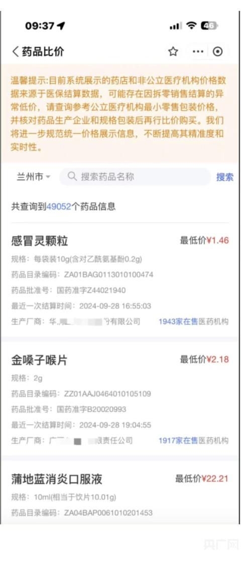 甘肃医保服务平台药品比价界面(央广网发 甘肃省医疗保障局供图)