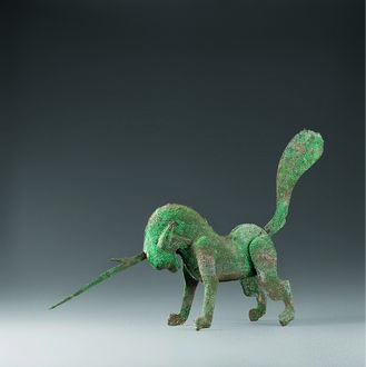 汉代铜独角兽,酒泉市下河清出土。高24.5厘米,长70.2厘米。