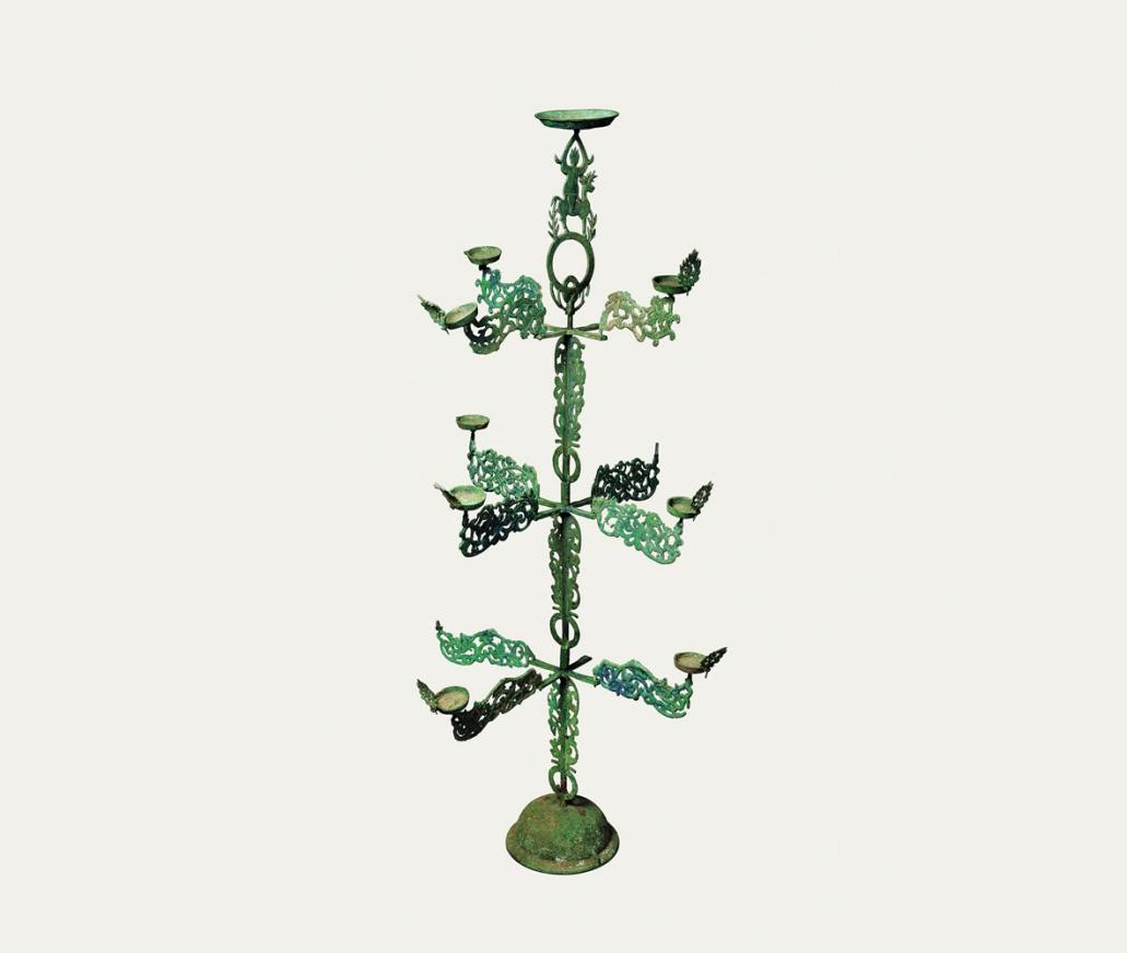汉代十三盏铜连枝灯,武威市雷台汉墓出土,高146厘米,宽66厘米。