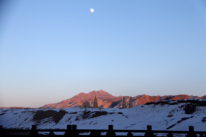 三危山位于甘肃省敦煌市东南25公里处,绵延60公里,山峰雄奇壮观,主峰在莫高窟对面,因“三峰耸立,如危欲坠”,故名三危。(张晓亮)