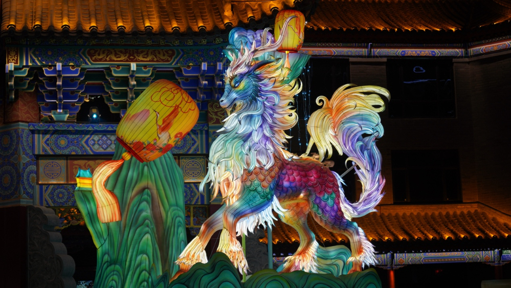 “锦绣东方金城画卷”主题灯展巧妙融合了《山海经》经典元素,由自贡百名匠人耗时3个月精心设计制作,以麒麟神境、仙山遗梦、奇幻山海、龙腾盛世为主题,为市民带来一场美轮美奂的视觉盛宴。