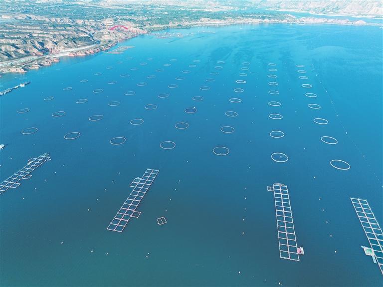 冬日,来到黄河上游的永靖县,高峡平湖——刘家峡水库,碧波滢滢,一处处网箱渔场“镶嵌”水面。水中的金鳟、虹鳟、鲟鱼欢快游弋,亚东鲑、山女鳟、全雌虹鳟鱼翔浅底,一派生机盎然的景象。永靖县充分挖掘冷水鱼养殖特色资源优势,发展生态健康养殖新模式,依托高峡平湖周边环境优美的自然风光、人文景观、生态资源优势,培育休闲渔业,促进群众持续稳定增收,延长产业链条,构建现代渔业高质量发展之路,实现渔业生产与环境友好、农旅深度融合发展的良好格局。