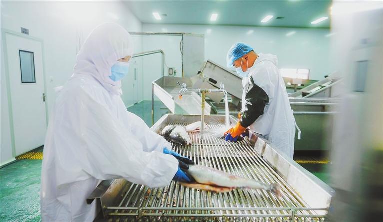 甘肃文祥生态渔业股份有限公司员工分割鱼产品。本文图片除署名外均由甘肃文祥生态渔业股份有限公司提供