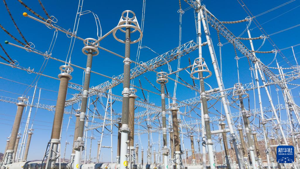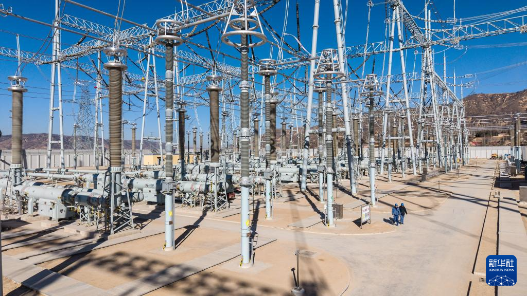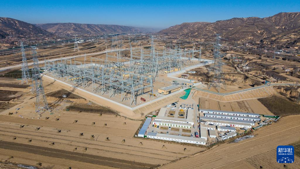 这是1月7日拍摄的庆阳北750千伏输变电工程施工现场(无人机照片)。新华社记者 郎兵兵 摄