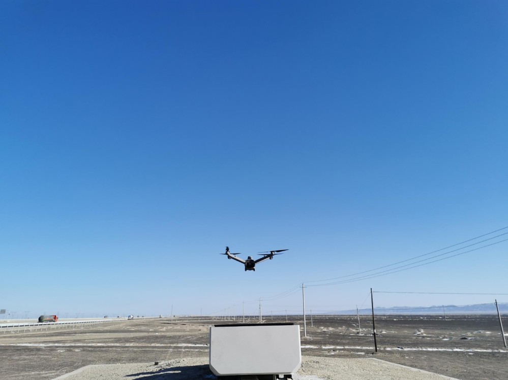 该无人化道路巡检系统依托酒泉公路事业发展中心在G30连霍高速公路嘉安段的路面养护维修工程,旨在解决无人机道路巡检、路面及设备设施动态自动化监测等问题。项目团队在G30嘉安高速公路SK2653处(188基站)和SK2643处(小宛基站)分别建立了无人化巡检基站及巡检平台,部署了两套无人化值守系统。目前,无人机机场已完成安装与调试,系统正式投入运行。