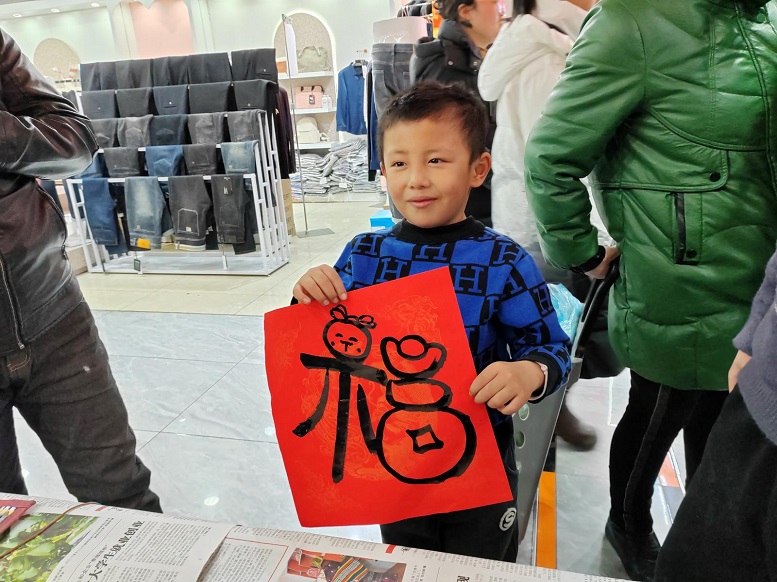 “这是我第一次写福字,感觉特别有趣,我要把这个福字贴在我家大门上,希望新的一年我们家都福气满满。”现场一位小朋友兴奋地说。