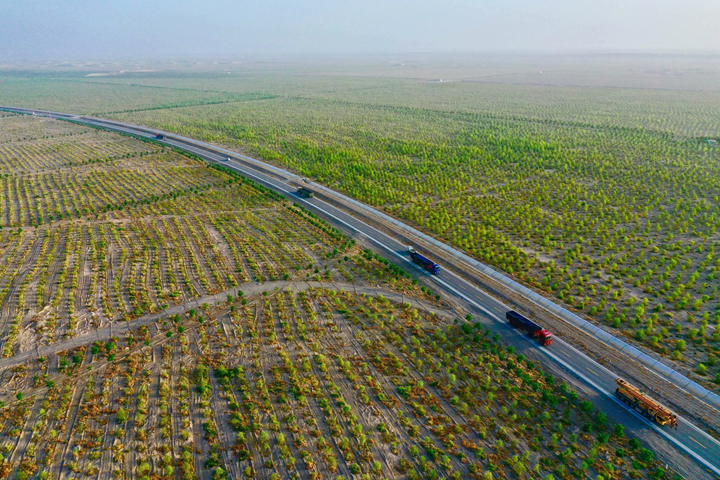 金塔县环城防护林网(资料图)。金塔县林业和草原局供图