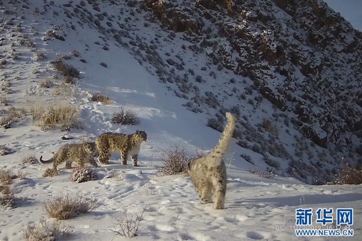 酒泉市瓜州县境内安西保护区红外相机拍摄到的雪豹(资料图)。甘肃省林业和草原局供图