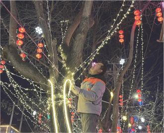 “全县春节氛围营造工作已全面展开,涵盖街景亮化、行道树亮化,范围覆盖阿阳路、中街等县城主要路段以及成纪文化广场等居民活动场所,通过悬挂灯笼、中国结、春福等春节元素的灯饰挂件,营造欢乐、祥和的节日氛围。”静宁县城市管理局市场综合管理办公室主任杨壮军介绍,目前,城区亮化氛围营造工作正在有条不紊地推进,相关部门将在做好春节亮化营造的基础上,组建专业维护队伍,强化设施巡查与维护,确保灯明景美常态化,让群众度过一个喜庆、祥和的新春佳节。