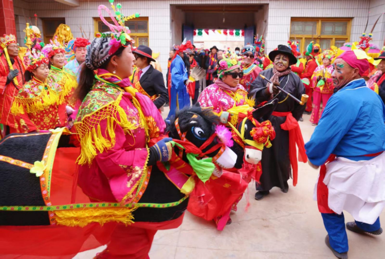 正月初四这天,永昌县朱王堡镇流泉村的乡村道路上人头攒动,热闹非凡。村委会党支部书记杨延英带领社火秧歌队挨家挨户表演拜年,村民们在家门口尽享闹新春的节日欢乐,年味十足的民俗文化盛宴为乡村增添了浓厚的节日氛围。(记者 柯玉栋)