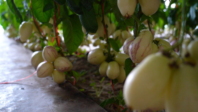 另一边的温室大棚内,人参果也不甘示弱,一个个圆润饱满的果实挂满枝头,表皮泛着淡淡的光泽,十分诱人。金塔县昼夜温差大、白天阳光充足,为人参果的生长提供了得天独厚的自然环境。在这样的环境下生长的人参果,不仅汁水丰富、甜度适中,而且富含多种维生素和矿物质,营养十分丰富。