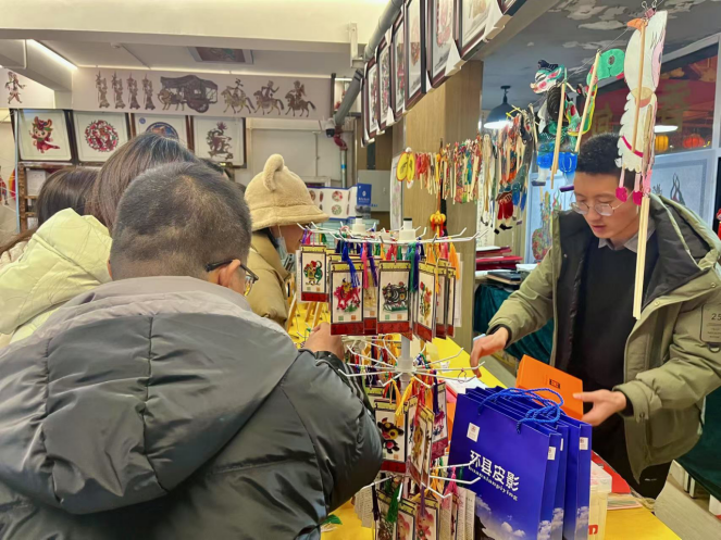 非遗深体验,小城品年俗。进入腊月以来,环州故城皮影馆热闹不断,一波又一波游客接踵而来,驻足观看皮影戏展演、雕刻,临走时还不忘买上几个皮影艺术品带回家。“被这些传承人的精神所打动,也被皮影戏传唱出的传统故事所吸引,买了很多书签、桌摆回去送给朋友,也算不虚此行。”来自北京的游客贾茹告诉记者。