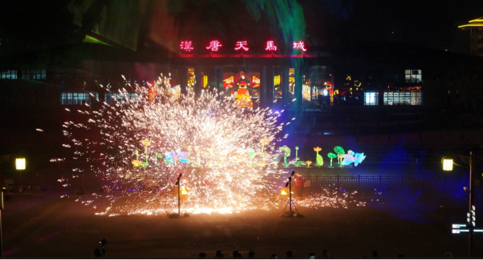 汉唐天马城景区全力筹备的第二届凉州灯会备受游客青睐,美轮美奂、造型各异的花灯错落有致,非遗打铁花、火壶表演在夜晚绚丽绽放,国风演绎与现代舞蹈完美融合,敦煌飞天极光秀如梦如幻,非遗宫廷盒子灯表演引人瞩目,篝火晚会热烈欢快,美食小吃街香气四溢。此外,热闹非凡的社火表演和气势磅礴的凉州攻鼓子等非遗民俗活动,让游客们体验到原汁原味的地方传统民俗文化。灯会活动开展期间,景区登上央视新闻和《人民日报》官方微博,引发广泛关注。抖音平台发布汉唐天马城灯会团购链接视频4273个,播放量超过1000万次。