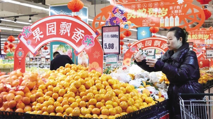 “春节期间,我们货源充足,整体销售情况良好。今年消费者在酒水类购买量有所减少,0糖0脂的健康饮品购买量增加了。这反映出消费者更加注重健康和养生。”北京华联生活超市酒泉富康店店长陈希燕说。