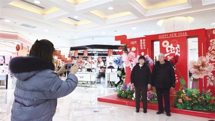 连日来,酒泉城区东方广场人流如织,商场点缀着各种红色装饰及蛇年元素,营造出浓厚的节日气氛。