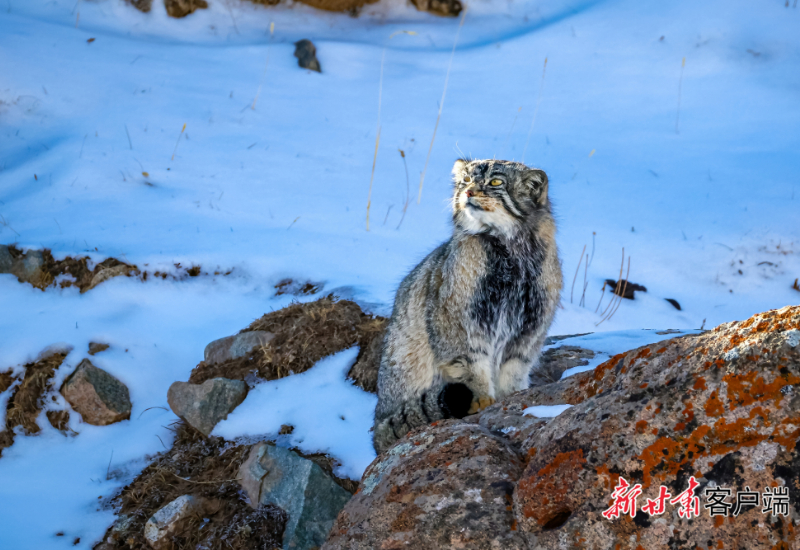 兔狲成为雪山上一道新风景。图片由新甘肃·甘肃日报通讯员华亮提供