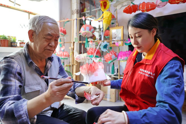 元宵节来临之际,甘肃省平凉市崆峒区手艺人温存林师傅制作出色彩鲜艳的花灯,为广大群众带来记忆中的“年味儿”。2月8日,国家电网甘肃电力(平凉电黄牛)连心桥共产党员服务队来到温存林家中,检查老师傅家中的用电情况。